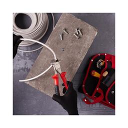 Торцевые кусачки REXANT 200 мм предназначены для точных работ и монтажа цепей слабого тока, перекусывания проволоки и проводов. Подходят как для профессиональных работ, так и для бытового применения. Оснащены закаленными кромками и покрыты оксидированным никелем, что продлевает срок службы инструмента в три раза дольше, чем без покрытия. Специальная форма усиленных рукояток обеспечивает дополнительный комфорт при работе. Хром-ванадиевый сплав (Chrome Vanadium) CrV, из которого изготовлен инструмент, обладает такими свойствами, как прочность, жесткость и устойчивость к износу. Во время прокаливания он менее подвержен деформациям и потере первоначальной формы, чем другие типы инструментальной стали. Технические характеристики: Материал рабочей части: высокоуглеродистая сталь CrV Твердость на поверхности инструмента: ≥48 HRC Твердость на поверхности режущих кромок: 58-62 HRC Покрытие: никель Усиленные рукоятки Способ обработки: закалка Длина инструмента: 200 мм Материал рукояток: ПВХ