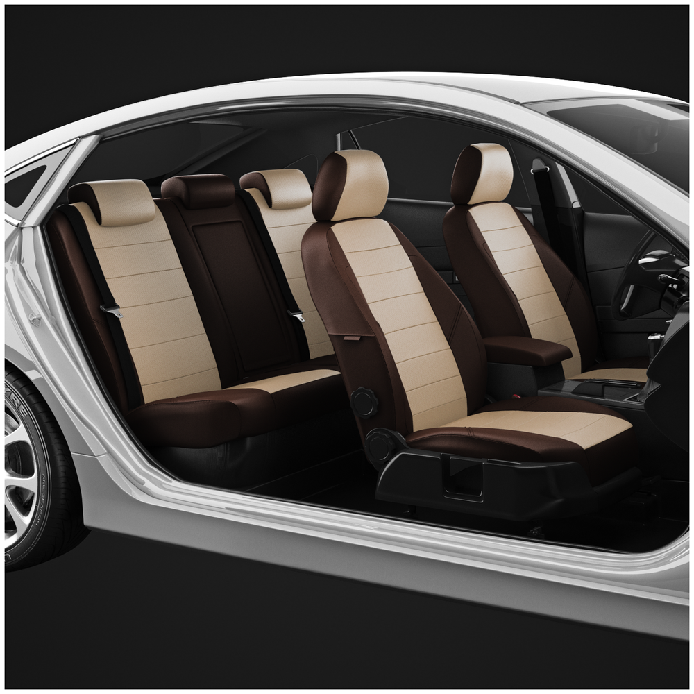 Авточехлы для Ford C-max 2 с 2010-н.в микровэн (C-MAX 2 GRAND) Задние спинка и сиденье отдельные-складные. Столик в передних спинках, 5-подголовников (Форд С-макс). ЭК-22 бежевая/шоколад
