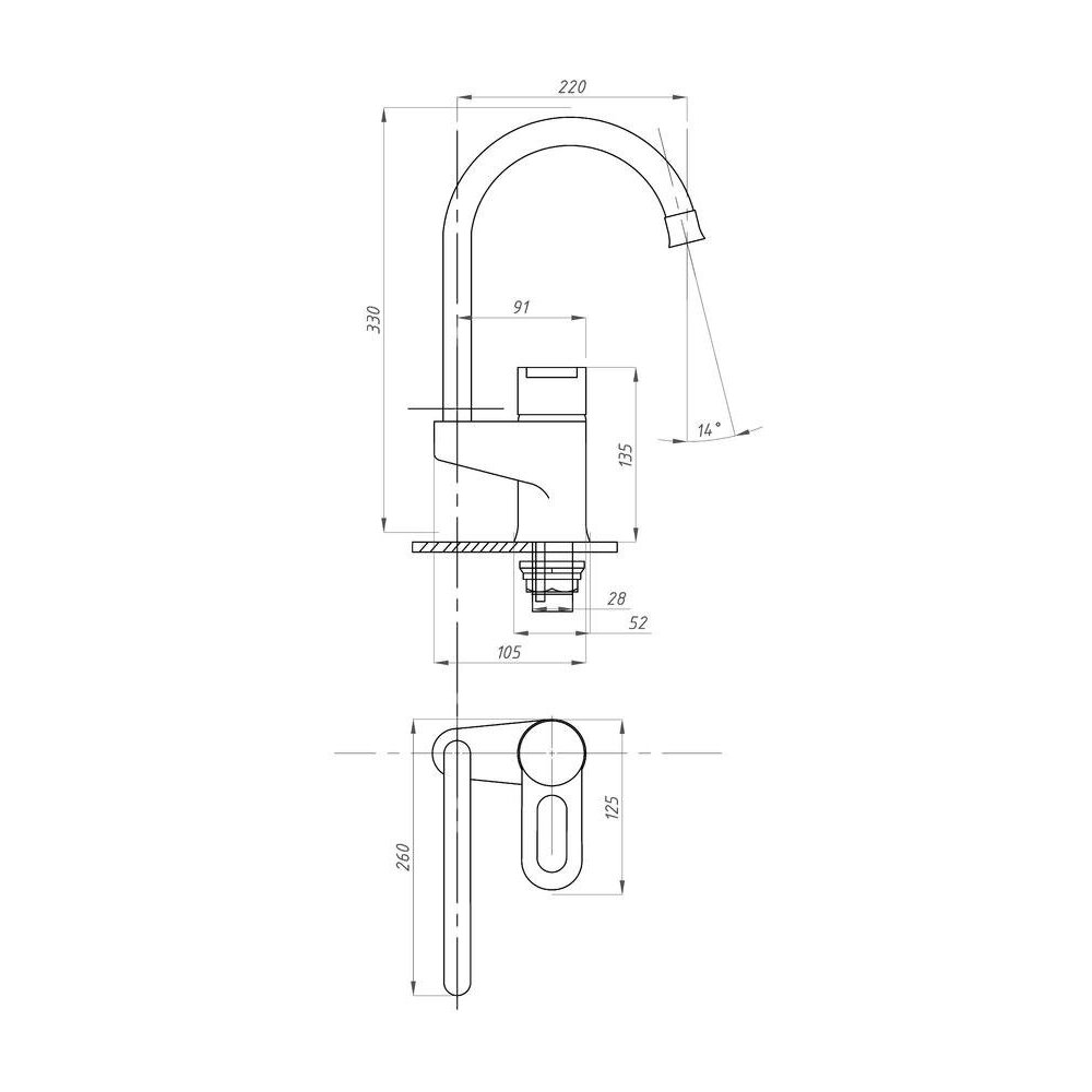 ПрофСан ПСМ-384-КТ/008, Смеситель для кухни боковая ручка