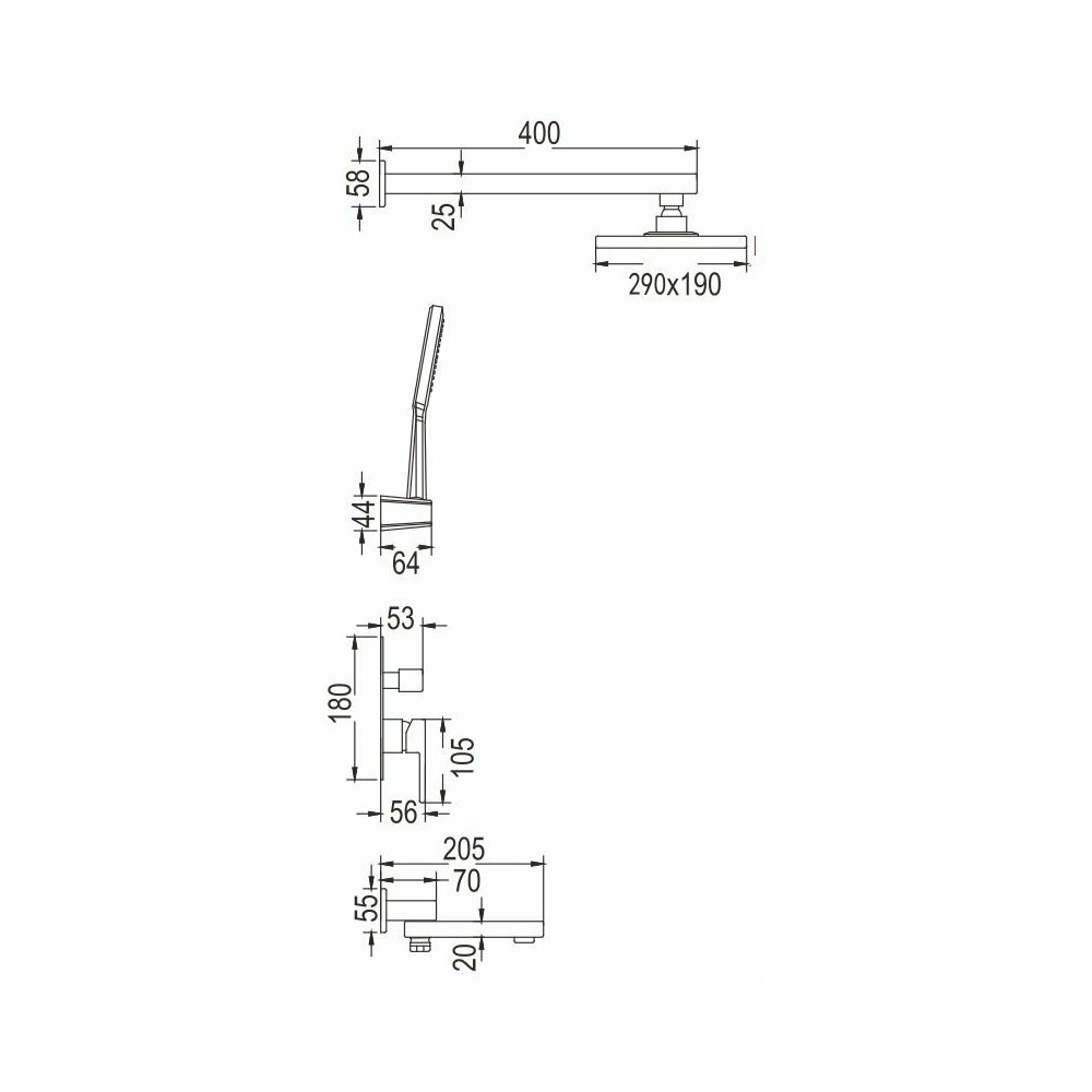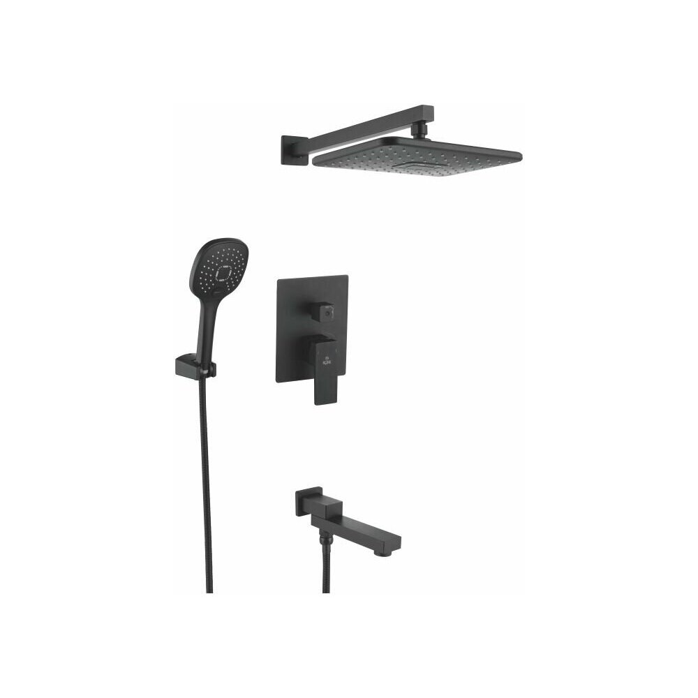 Встроенный настенный смеситель для ванны Цвет: Чёрный Аэратор: Neoperl (Швейцария) Материал: Латунь Картридж: керамический Citec (Испания) Тропический душ: 290*190 мм Ручная лейка: 3 режима Душевой шланг: 150 см растягивающийся шланг Технология: Испанская Гарантия: 5 лет