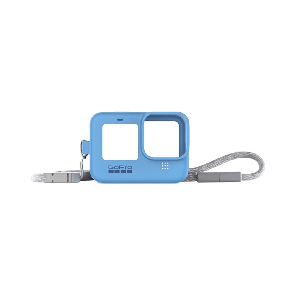 Артикул № 871860 Силиконовый чехол с ремешком для камеры HERO9 (Sleeve + Lanyard). Забудьте, что такое царапины и сколы на корпусе гаджета. Гибкий и прочный футляр пригодится всем, кто использует экшн-камеру не только ради качественной домашней съемки. Чехол сделан и качественного силикона, который не липнет к рукам даже при высоких температурах. Во время съемок зимой не становится хрупким и не теряет эластичность. Футляр плотно облегает камеру. Встроенные микрофоны остаются открытыми и записанный звук не искажается. В комплекте есть длинный шнур с затяжкой. Во время прогулок по городу повесьте камеру на шею, при съемках с моноподом веревку можно отстегнуть.