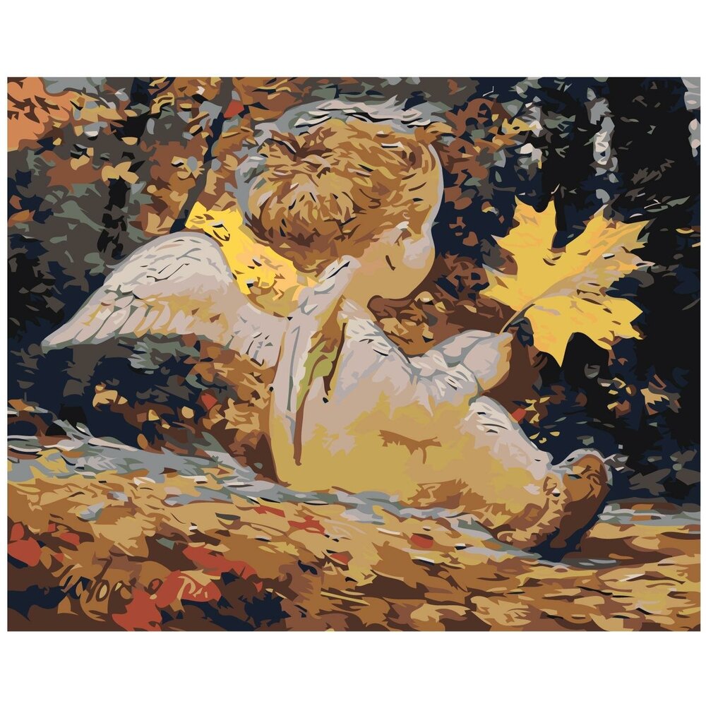 Ангелочек с листиком Раскраска картина по номерам на холсте