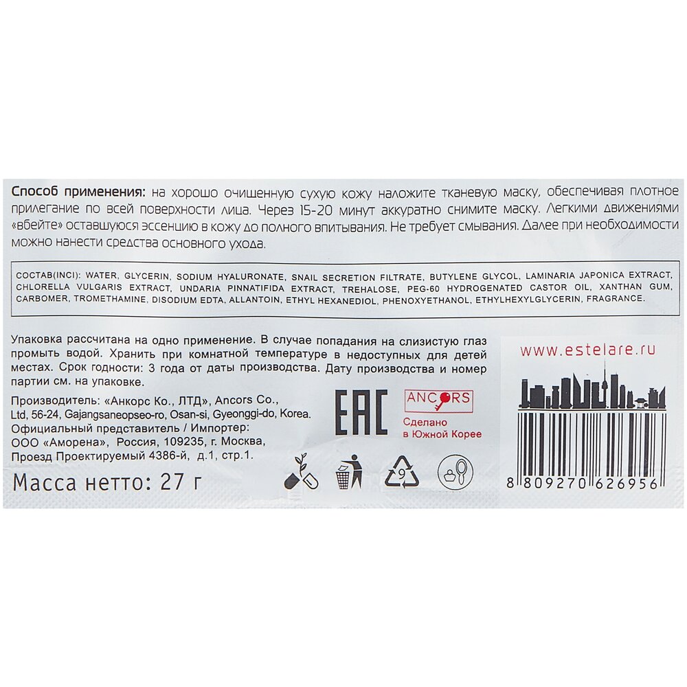 Ампульная маска, пропитанная концентрированной эссенцией фильтрата секреции улитки, гиалуроновой кислотой и экстрактами морских водорослей, приостанавливает процесс накопления возрастных изменений в коже на молекулярном уровне. Маска способствует регенерации клеток, укреплению соединительной ткани, поддерживает упругость и эластичность кожи, повышает её иммунитет и защитные функции. Фильтрат улитки великолепно увлажняет и питает кожу, выравнивает цвет и структуру кожи, оказывает омолаживающее воздействие. Экстракты морских водорослей обладают уникальным комплексом биологически активных веществ, усиливающих клеточный метаболизм и замедляющих процесс старения. Результат — подтянутая, нежная и сияющая кожа.