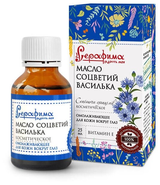 - Способ применения для кожи вокруг глаз в чистом виде наносится в вечернее время 1-2 капли масла на область вокруг глаз, через 15 минут остатки промокнуть салфеткой. Добавляется в привычные кремы в пропорции на 5 грамм основы 1-2 капли масла василька. Таким же образом проводится обогащение тоников и средств для снятия макияжа, которые используются для области вокруг глаз