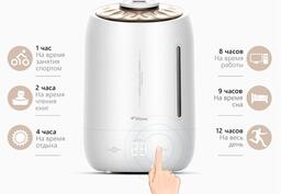 Ультразвуковой, производительность 350 мл/ч, для помещений до 40 м2, резервуар 5 л, антибактериальная защита, защита от известкового налета, гигростат, шум 36 дБ, таймер.