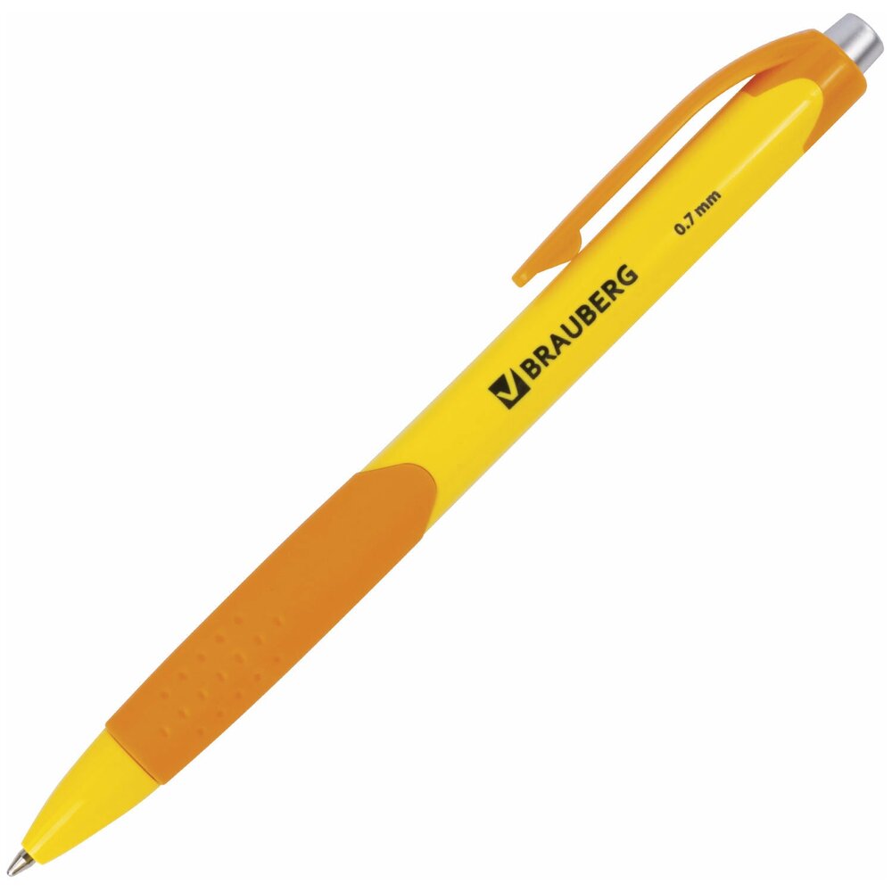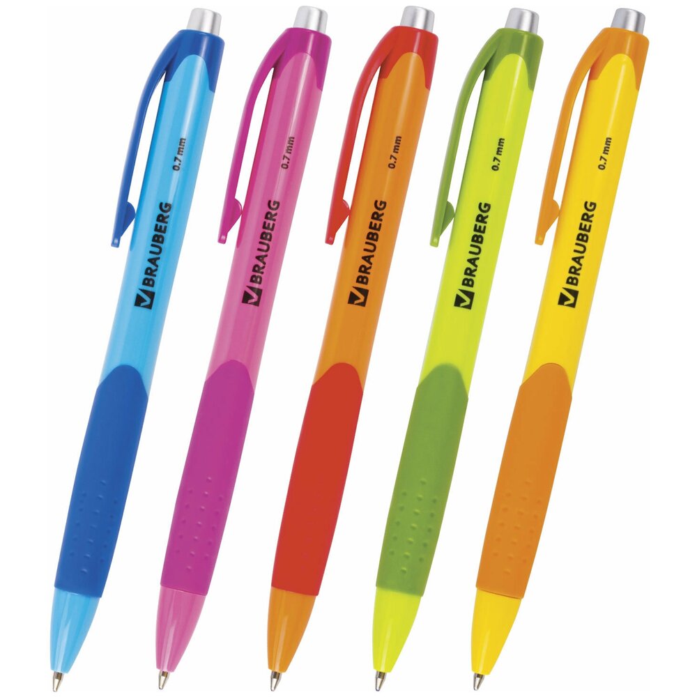 Ручка шариковая автоматическая с грипом BRAUBERG "Juicy", синяя, корпус ассорти, узел 0,7 мм, линия письма 0,35 мм, 141546