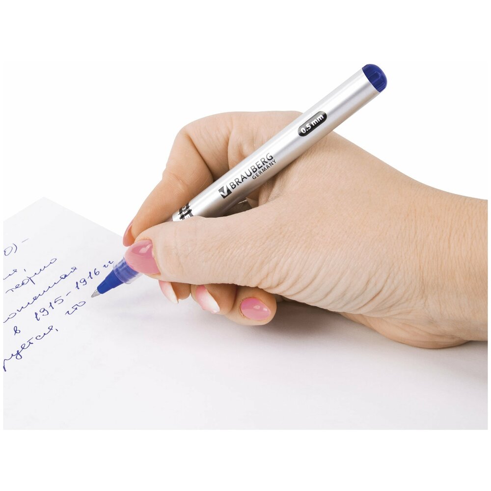 Ручка-роллер BRAUBERG "Flagman", синяя, корпус серебристый, хромированные детали, узел 0,5 мм, линия письма 0,3 мм, 141556