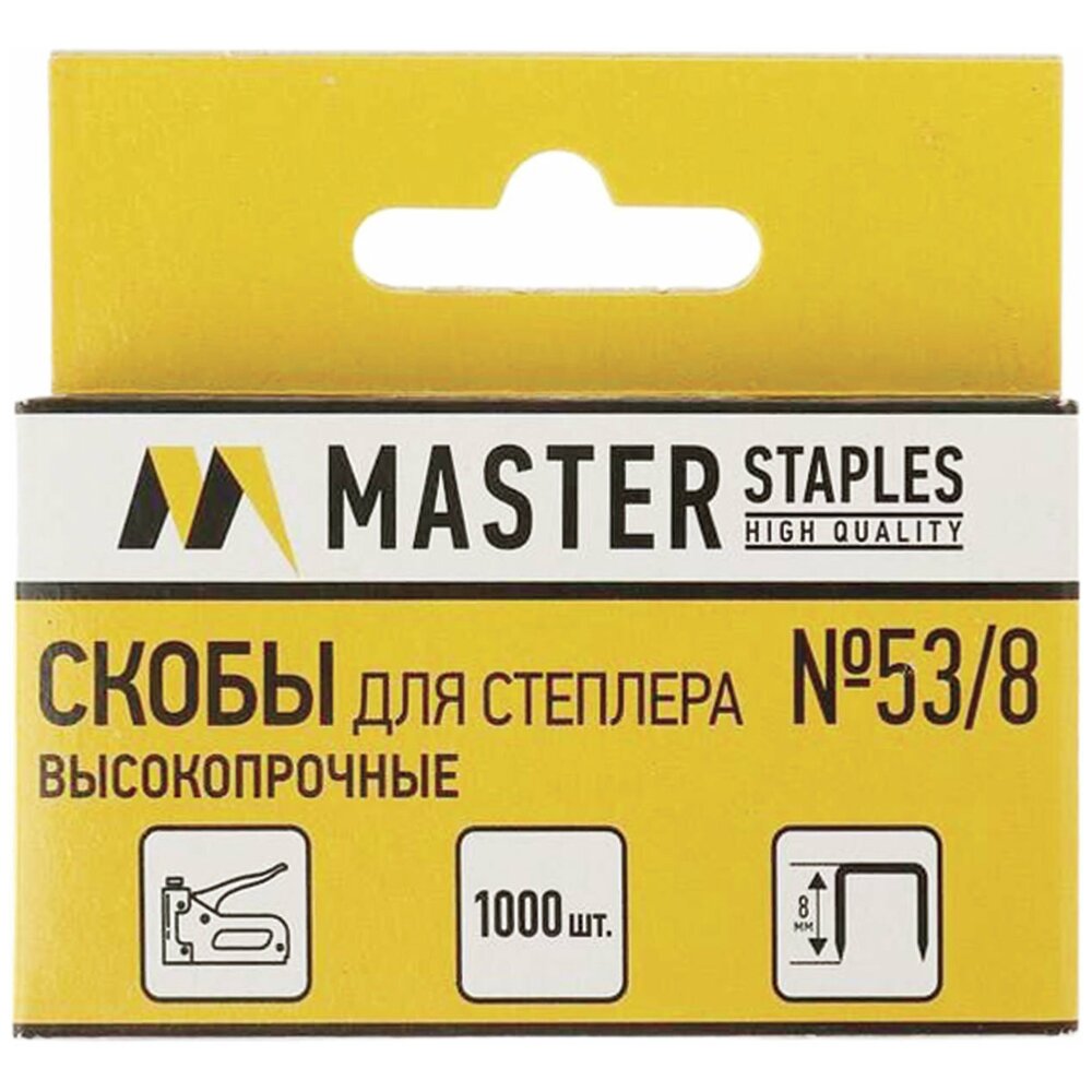 Скобы для степлера мебельного, тип 53, 8 мм, MASTER, высокопрочные, количество 1000 шт., СМ53-8Б
