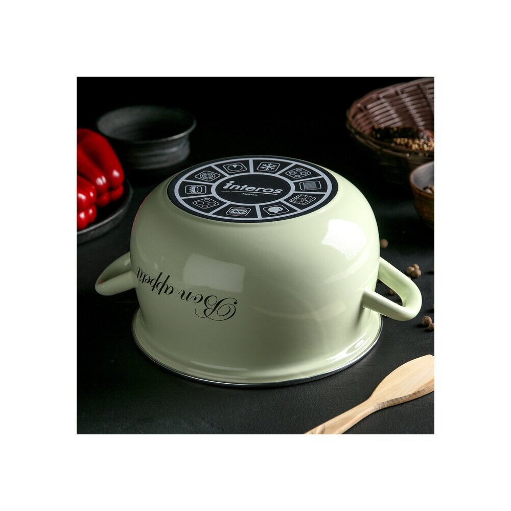 Эмалированная кастрюля Interos из качественной стали, покрытой двухслойной стеклокерамической эмалью, отлично подходит для приготовления и хранения различных блюд. Особенности: крышка ускоряет приготовление пищи, внутренняя поверхность безопасна для продуктов питания, удобные ручки, оригинальный дизайн. Посуда подходит для газовых, электрических, стеклокерамических, галогенных и индукционных плит. Рекомендуется избегать использования высокоабразивных моющих средств и железных губок.