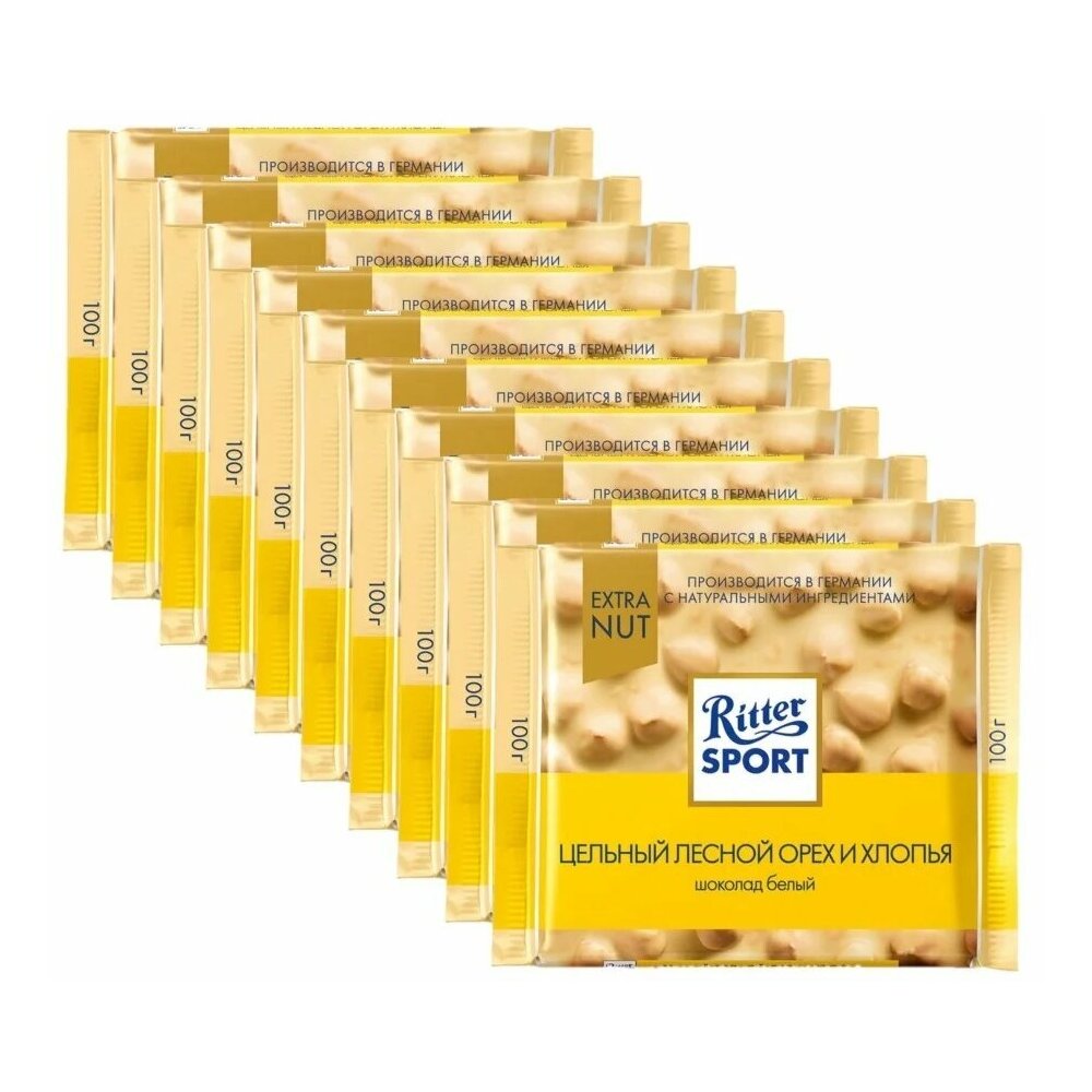 Шоколад Ritter Sport Extra Nut белый цельный лесной орех и хлопья, 100 г, 10 уп.