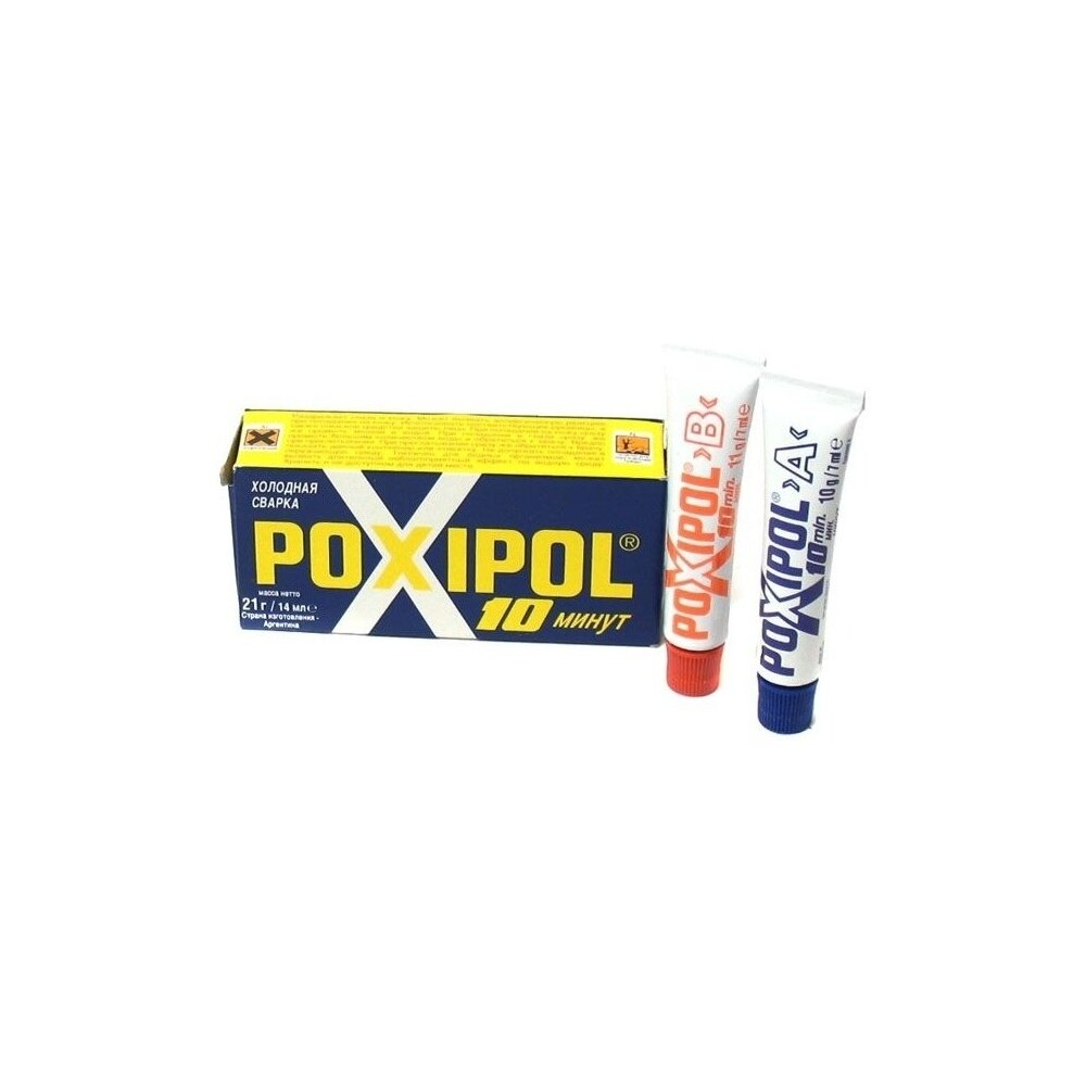 Эпоксидный двухкомпонентный клей склеивает металл, стекло, резину, дерево, бетон, фаянс и другие материалы. Наносится как замазка, становится твёрдым как металл. Можно сверлить, нарезать резьбу. Поксипол не изменяет объём, не деформируется. Не ломается: твёрдый, но эластичный. Можно использовать при температуре до 120 градусов по Цельсию. Может наноситься слоем любой толщины. Холодная сварка Poxipol затвердевает даже под водой. Применяется на морозе без подогрева и дополнительного давления. Холодная сварка устойчива к воздействию кислот, растворителей и химических продуктов. Не изменяет своих свойств со временем, не ржавеет. Влагоустойчив и термоустойчив.