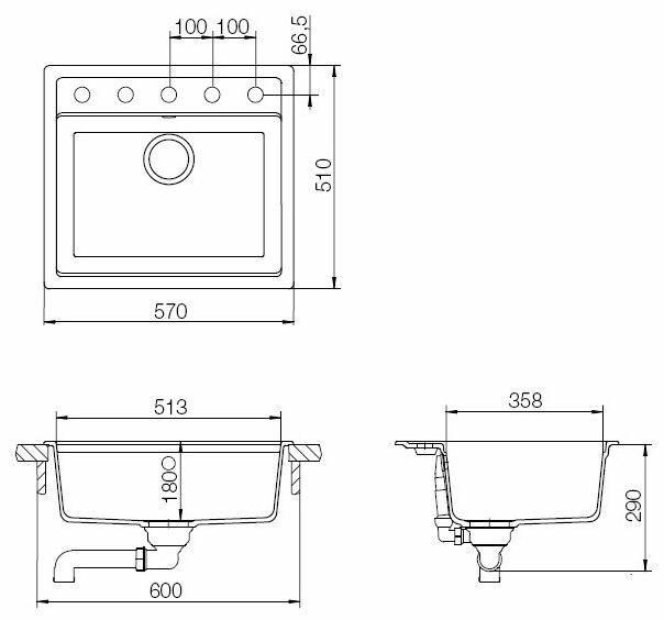 • Размер монтажного отверстия под мойку (ШхГ) 55x49 см