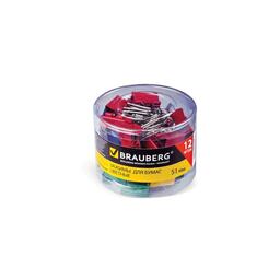 BRAUBERG Зажимы для бумаги 221131 51 мм (12 шт.) красный/синий/желтый/зеленый
