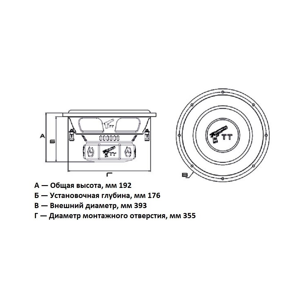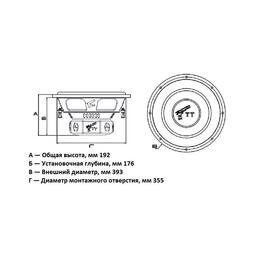 Корзина с усиленными ребрами жесткости и с фирменным логотипом серии ТТ. Устойчивая к перегрузкам звуковая катушка 3″ (76,2 мм) с высотой намотки 30 мм на алюминиевом каркасе увеличенного сечения. Надежная, износостойкая подвижная система. Два кольцевых ферритовых магнита (156x90x20 мм каждый). Высокопрочная центрующая шайба из материала Nomex c дополнительным металлическим фиксирующим кольцом. технические характеристики Размер 15 дюймов (38 см) Максимальная мощность 1000 Вт Номинальная мощность 500 Вт Сопротивление, Ом 2+2 Чувствительность, дБ 85,5 Звуковая катушка, дюймы 3 Высота намотки звуковой катушки, мм 30 Вес магнитной системы, Oz 2х45 (156х90х20) параметры тиля-смолла Fs, Гц 25,5 Qms 5,30 Qes 0,64 Qts 0,57 Vas, л 89,5 Xmax (в одну сторону), мм 20 Bl 18,6 Cms 0,11 Mms 346,4 установочные размеры Общая высота, мм 192 Установочная глубина, мм 176 Внешний диаметр, мм 393 Диаметр монтажного отверстия, мм 355 Расстояние по крепежу, мм 376 Комплектация - 1 Шт.