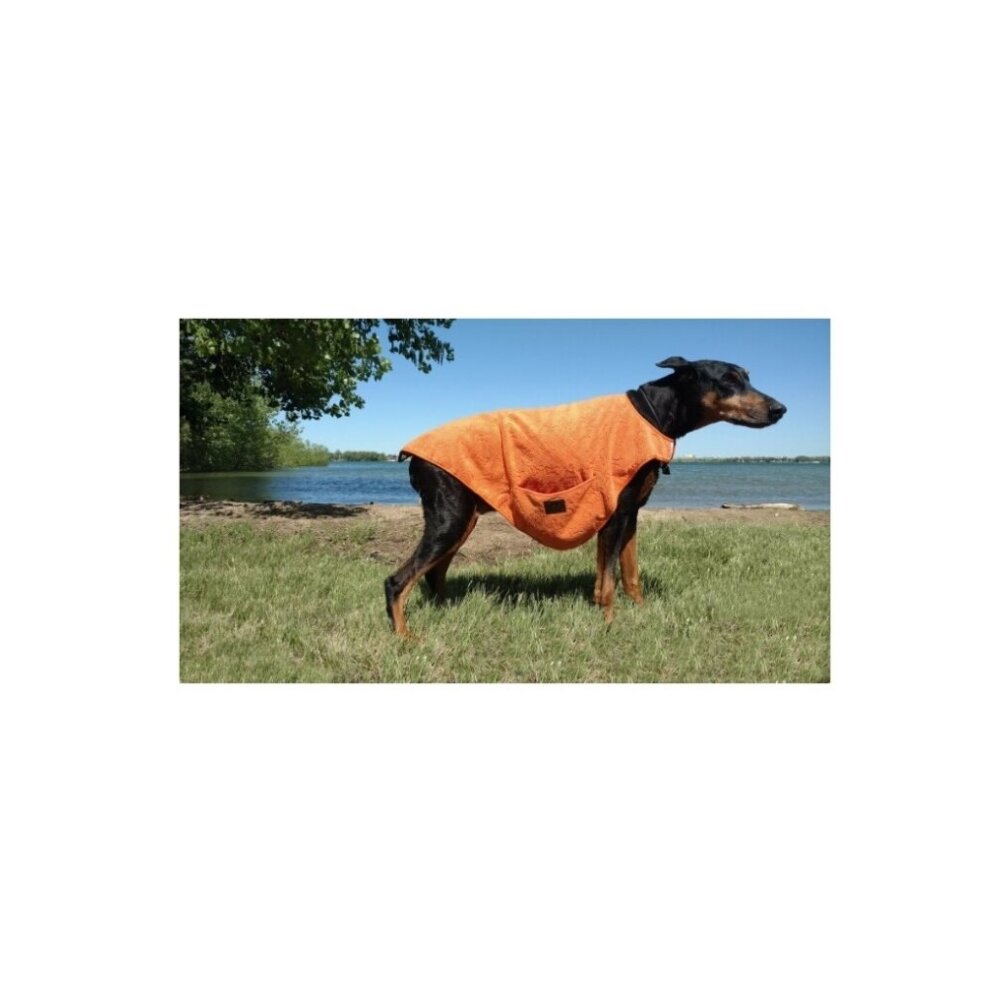Да, да мою шёрстку тоже лучше подсушивать полотенцем прежде, чем я приступлю к воздушным ваннам. Наконец-то появились специальные, удобные полотенца из микрофибры для животных. Моё полотенце имеет яркий оранжевый цвет с принтом в виде косточек, специальную петельку для подвешивания, удобную застежку на липучке вокруг шеи и кармашки для рук, с помощью которых, процесс вытирания становится еще более комфортным. Это полотенце обладает супер впитывающими свойствами, оно занимает совсем немного места, его можно стирать в машинке и оно быстро сохнет. Допускается машинная стирка в ручном режиме при 30градусах. Материал: Полиэстер Размер: 51х51см (подходит для маленьких и средних собак), 67х67см (для средних и крупных собак). Великобритания
