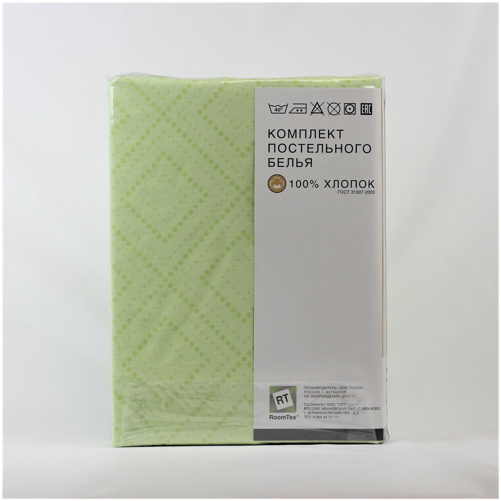 Постельное белье от бренда RoomTex, изготовлено из бязи (100% хлопок), плотности 120 гр./м2. Натуральный материал (хлопок) абсолютно экологичен, не вызывает аллергии, хорошо пропускает воздух, позволяя телу “дышать”. При соблюдении рекомендаций по уходу, ткань легко стирается, не дает усадки и практически не мнется, позволяя гладить белье без отпаривания. Высокая плотность скрутки нитей ткани не подвержена образованию катышков. Способ застегивания наволочки – клапан, что очень комфортно, при использовании наволочка не раскрывается, пододеяльника - отверстие без застежки снизу изделия с подвернутым краем. А красивая и современная упаковка станет неотъемлемой частью подарка, для Вас и Ваших близких.