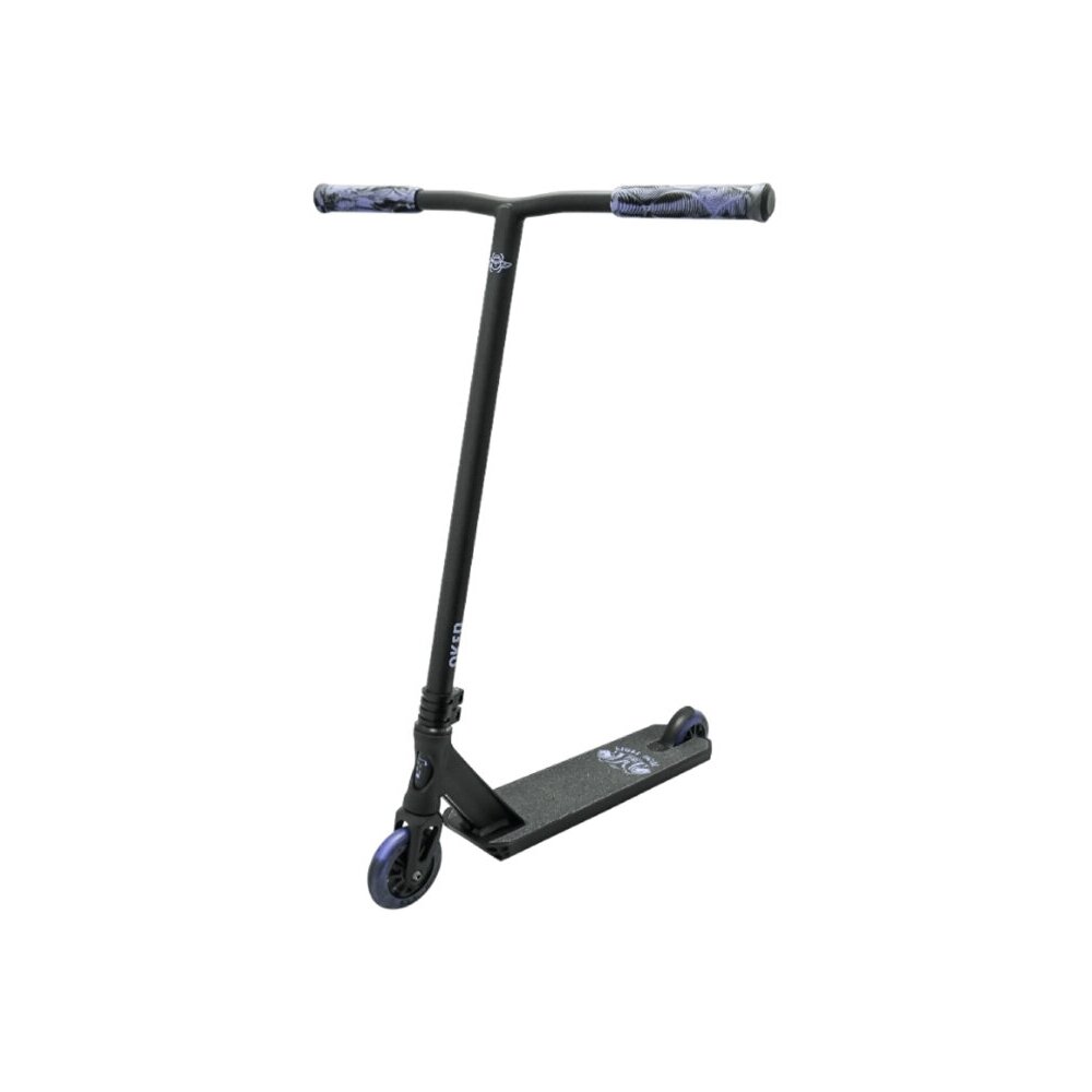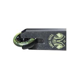 Модель позиционируется как универсальная, подходящая как в стрит, так и в парк. Руль-чайка, близкий к Т-образному, с мягкими резиновыми грипсами и пластиковыми барендами выполнен из хромолевой стали. Фрезерованные IHC-зажим и вилка самоката изготовлены из алюминия, интегрированная рулевая на промышленных подшипниках. Зажим реализован в лёгком варианте, оснащён стальной шпилькой, распределяющей нагрузку.<p>Колеса c SHR (сверхвысоким отскоком) выполнены из полиуретана жёсткостью 88A. Подшипники ABEC 9. Дека изготовлена из сплава AL 6061, шея деки усилена дополнительными рёбрами жёсткости. Надписи на нижней части деки и шее выполнены с помощью устойчивой к износу лазерной гравировки.</p>