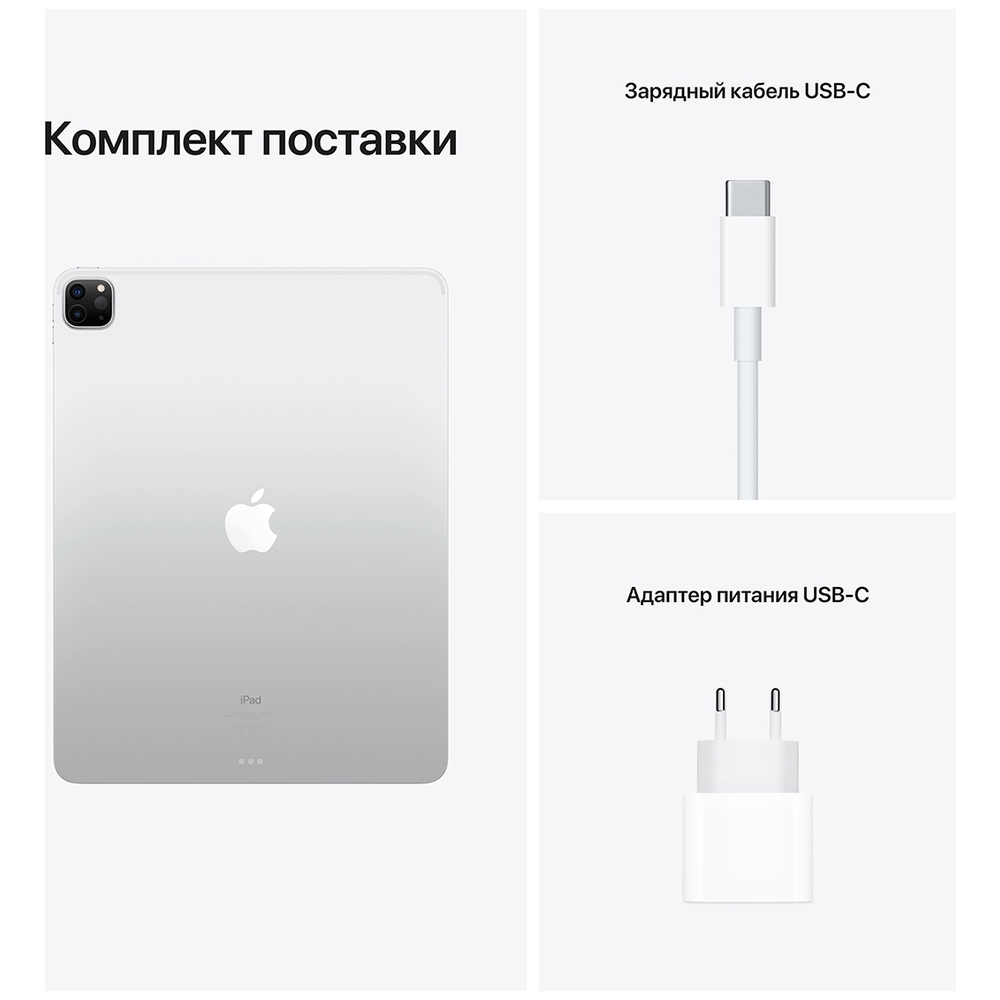 iPad Pro 12.9″ (2021) Wi-Fi + Cellular с поддержкой сотовой связи — самый мощный планшет от компании Apple.<br />Особенность этой серии — уникальный чип M1, который также используется в MacBook Pro и Air, Mac mini и iMac. Уникальные технологии чипа обеспечивают высочайшую производительность, а его энергоэффективность позволяет целый день работать без подзарядки. С восьмиядерным центральным процессором можно создавать сложные модели с дополненной реальностью и играть в игры с графикой консольного уровня и высокой частотой обновления кадров.<br />Дисплей Liquid Retina XDR 12,9″ с технологией mini-LED и контрастностью 1 000 000:1 передаёт каждую деталь с невероятной реалистичностью. Он отлично подойдёт для работы с фото и видео HDR или для просмотра любимых фильмов и сериалов, поддерживает самые передовые технологии, такие как широкий цветовой охват, True Tone и ProMotion.<br />iPad Pro 12.9″ оснащён сверхширокоугольной камерой с матрицей на 12 Мп и углом обзора в 122 градуса. Новая функция «В центре внимания» позволяет снимать выразительные селфи в портретном режиме и идеально подходит для звонков по FaceTime. Теперь, передвигаясь по комнате во время звонка, вы всегда остаётесь в центре кадра.<br />Ещё одна особенность iPad Pro 12.9″ — это Thunderbolt, самый быстрый и универсальный порт. Он поддерживает разъём USB‑C и позволяет подключать множество высокопроизводительных аксессуаров.