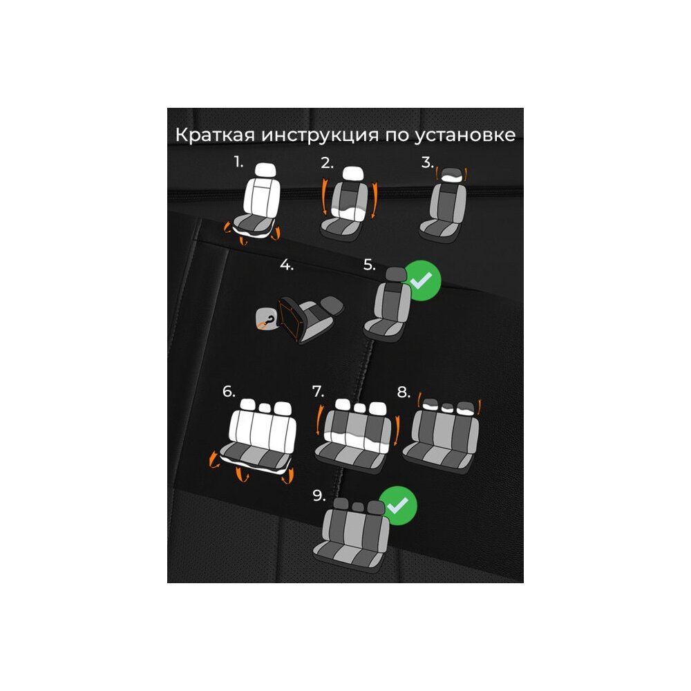 Универсальные классические чехлы изготавливаются из экокожи и подойдут для большинства отечественных легковых автомобилей и иномарок. Изделия повторяют штатную форму сидений и выглядят как оригинальный кожаный салон. Середина чехлов имеет эффект перфорации – воздух циркулирует через поры изделия. Огнеупорный поролон толщиной 5 мм не допустит распространение возгорания в салоне автомобиля. Чехлы сохраняют полную функциональность салона - трансформация сидений, не препятствуют работе подушек безопасности AIRBAG и подогреву сидений. Прорези для системы крепления детских автокресел ISOFIX, подголовников и других индивидуальных элементов салона делаются после установки чехлов и производятся ножницами. Более подробную информацию по установке и рекомендациям вы найдете в инструкции к авточехлам. Рекомендаци ПО уходу. Не реже одного раза в квартал проводите сухую чистку пылесосом.