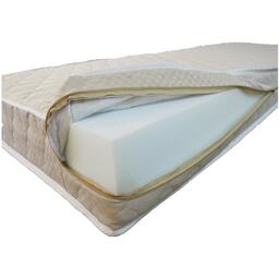 Сменный чехол на молнии размер 120х200 высота матраса 22 см. Чехол сеганный с синтепоном 150 гр, по трем сторонам проходит молния, что облегчает замену чехла. Состав ткани матрасной 80% полиэстра и 20% хлопка.