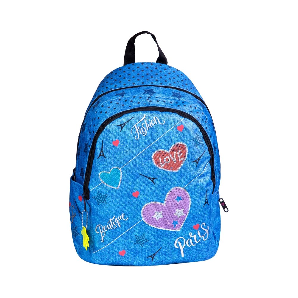 Подростковый рюкзак серии Joy. Имеет 2 отделения, 2 боковых кармана, эргономичную вентилируемую спинку с мягкими вставками из спонжа и широкие регулируемые лямки. Внутри основного отделения карман и карман на молнии, внутри переднего отделения - карман и сетчатый карман на молнии. Рюкзак имеет усиленное дно, ручку-петлю, светоотражающие элементы на лямках, боковых и передней (светоотражающий брелок) частях рюкзака. Выполнен из прочного полиэстера. Декоративный элемент - вышивка пайетками.