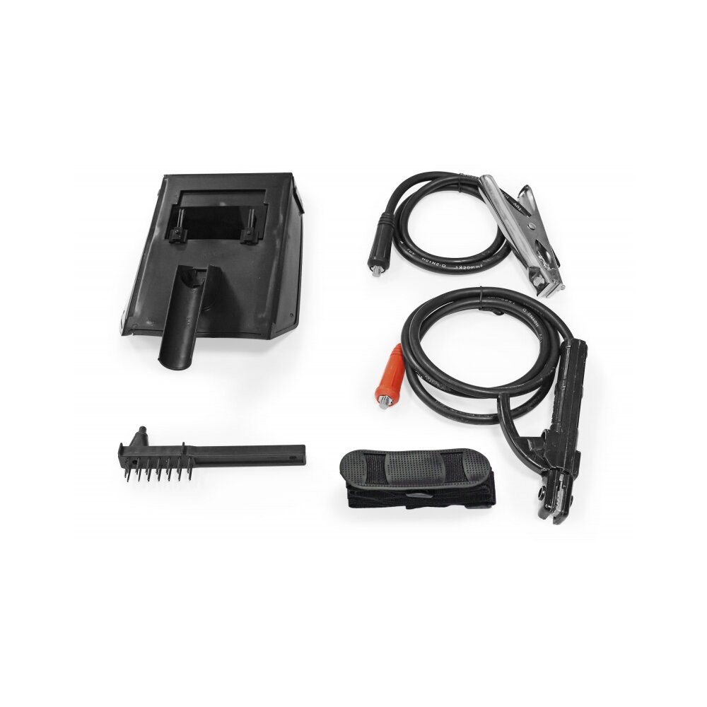 - Комплектация сварочный аппарат, плечевой ремень, защитная маска, зажим заземления, щетка-молоток, сварочный кабель с держателем электрода, руководство