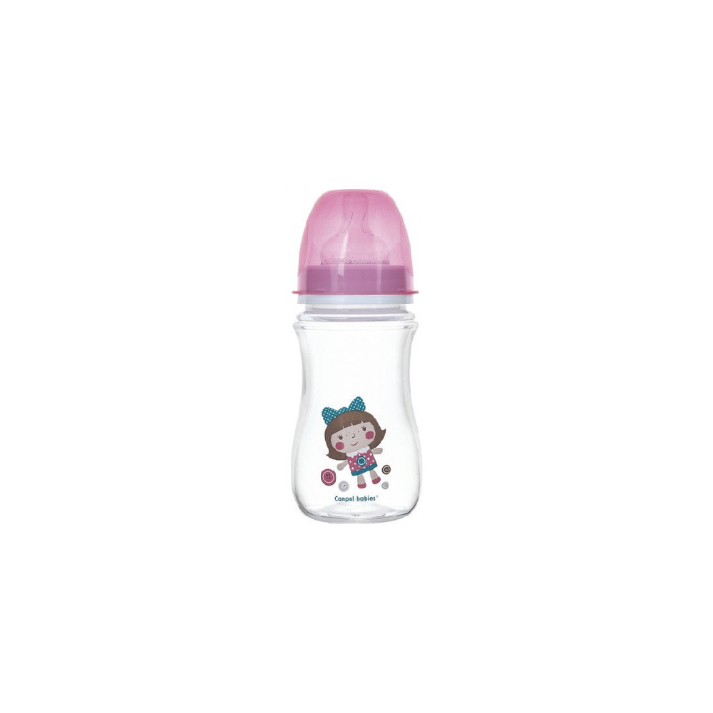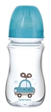 Бутылочка Canpol Babies предназначена для кормления детей в возрасте от 3 месяцев и оснащена силиконовой соской медленного потока, которая подходит детям, находящимся на смешанном вскармливании.<p>Специальный антиколиковый клапан на соске препятствует заглатыванию лишнего воздуха во время кормления, уменьшая риск возникновения колик. Широкое горлышко бутылочки позволяет легко наполнять её и облегчает процесс чистки, а чёткая мерная шкала позволит отмерить необходимое количество пищи.</p><p>Бутылочка выполнена из лёгкого, но прочного материала — полипропилена. Не содержит Бисфенол-А. Отлично лежит в руке и делает процесс кормления более удобным.</p>