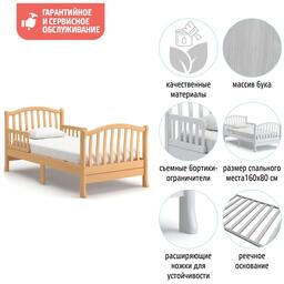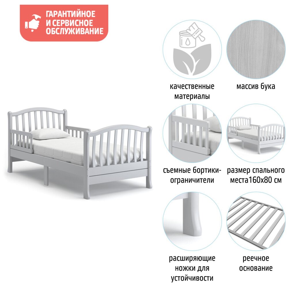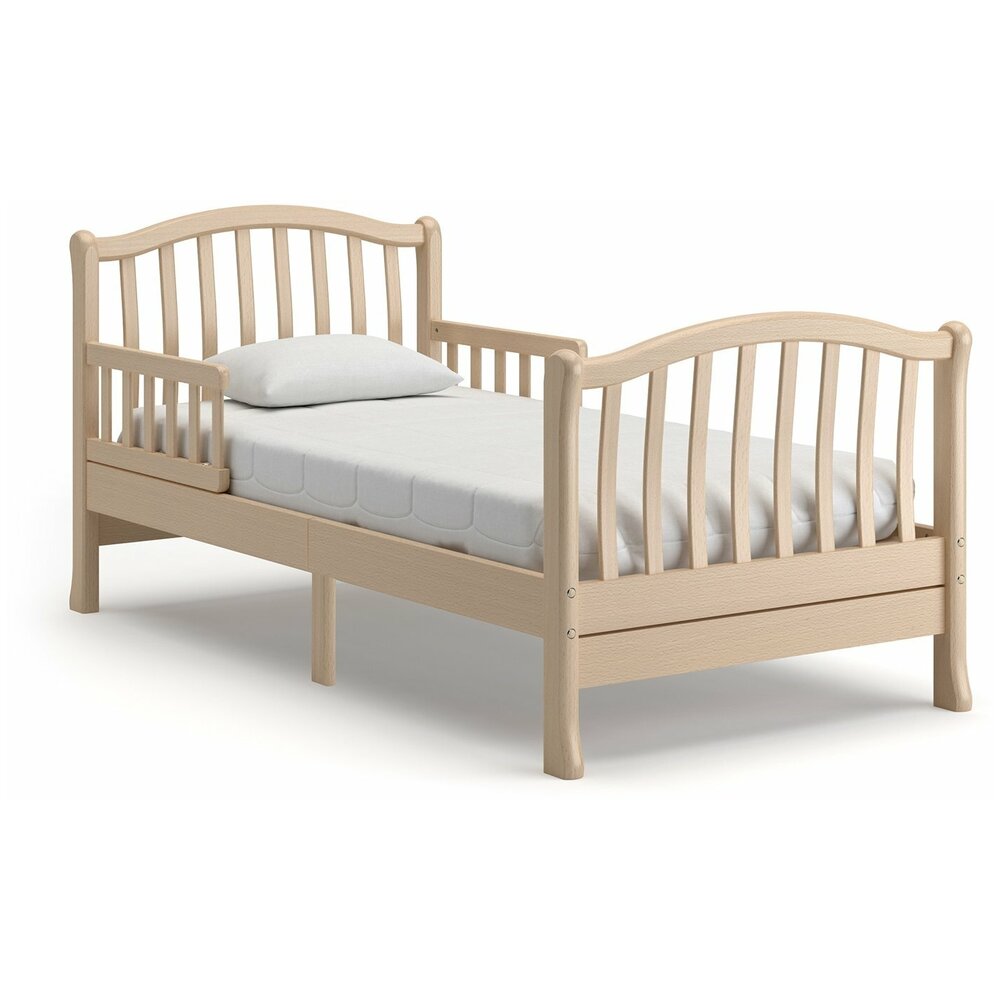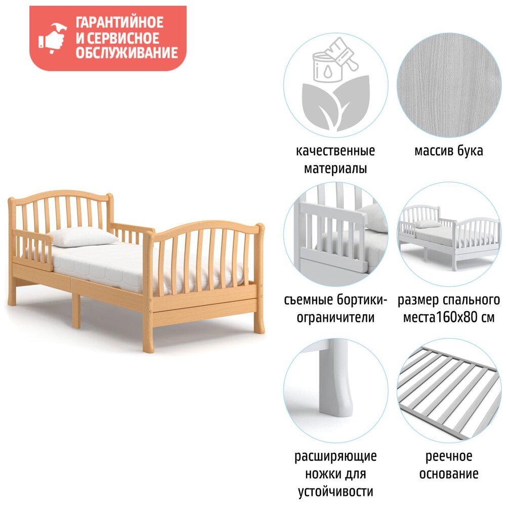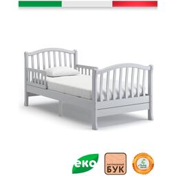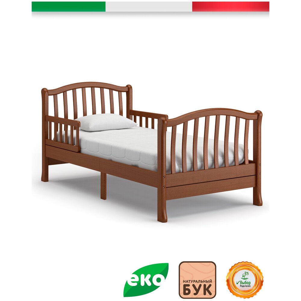 Подростковая кровать Nuovita Destino удобна как для малышей, начиная с<br />трёхлетнего возраста, так и для детей-подростков.<br />Особенностью данной модели является наличие съёмных бортиков-<br />ограничителей, чтобы исключить возможность падения спящего ребёнка.<br />Ножки являются расширенными внизу, что не допускает опрокидывания кровати.<br />Изящная спинка выполнена из тонких изогнутых реек, которые позволяют<br />родителям даже на расстоянии хорошо видеть спящего ребёнка.<br />Просторное ложе 160х80 см подарит детям наслаждение от комфорта и уюта.<br />Все детали скреплены высококачественными мебельными винтами, стяжки<br />выполнены по традиционным итальянским технологиям и стандартам<br />производства.<br />Кровать имеет экологически чистое покрытие водорастворимыми красящими<br />эмалями и лаком высокой степени стойкости.<br />Кроватка Nuovita Destino прослужит долго и при этом не потеряет роскошного<br />вида.