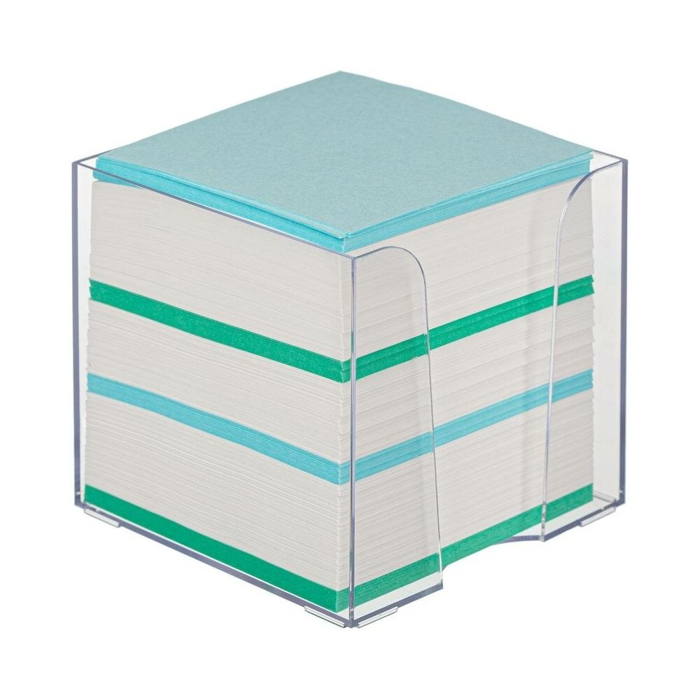 \n Блок для записей в боксе Attache предназначен для работы в офисе или дома. Будет полезен в использовании для рабочих процессов и повседневных задач. Отлично подходит для работников офиса . Блок высотой 9 см сложен из квадратных листов размером 9x9 см и вложен в прозрачный пластиковый бокс. Прозрачный пластиковый бокс обеспечивает удобство использования и порядок на рабочем столе. Листы не склеены между собой. Листы изготовлены из бумаги плотностью 65 г/кв.м. В боксе представлены листы трех цветов: белого, голубого, зеленого. Блок для записей подходит для письма любыми типами ручек и карандашей. Поставляется в термоусадочной пленке, защищающей блок при транспортировке.