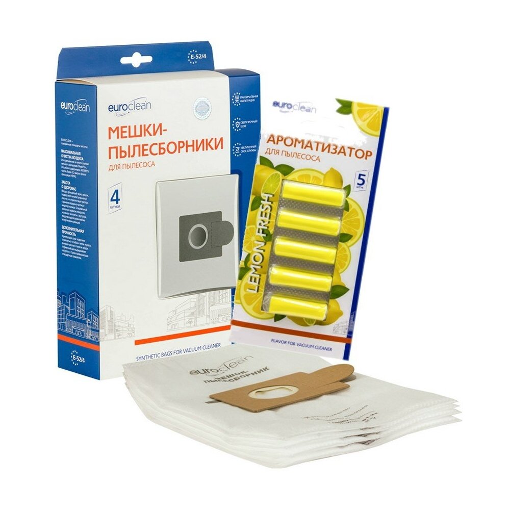 Мешки-пылесборники Euroclean синтетические 4 шт и ароматизатор "Лимон" для пылесоса CAMERON CVC-1050