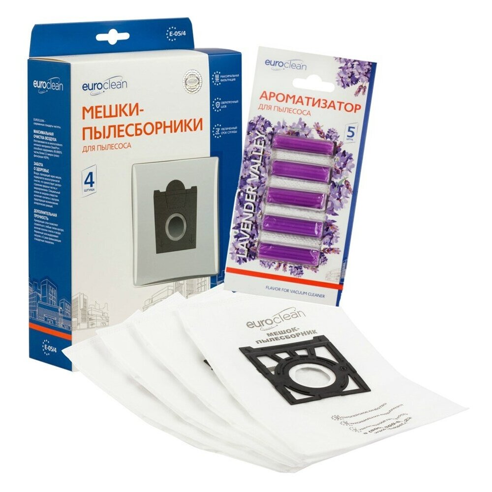 Мешки-пылесборники Euroclean синтетические 4 шт и ароматизатор "Лаванда" для пылесоса SIEMENS VSZ5XTRM501