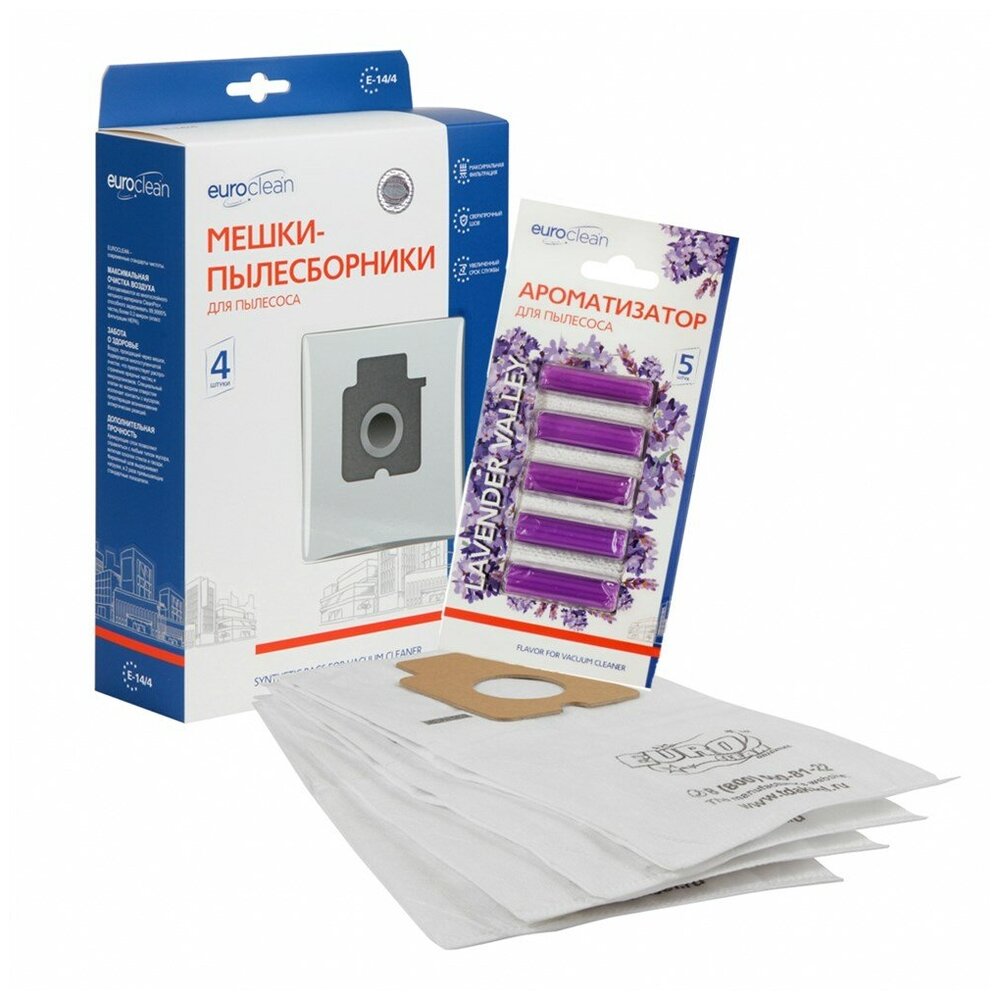 Мешки-пылесборники Euroclean синтетические 4 шт и ароматизатор "Лаванда" для пылесоса PANASONIC MC-E871