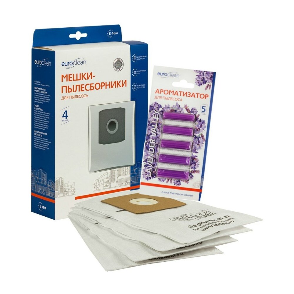 Мешки-пылесборники Euroclean синтетические 4 шт и ароматизатор "Лаванда" для пылесоса DAEWOO RC-220 …