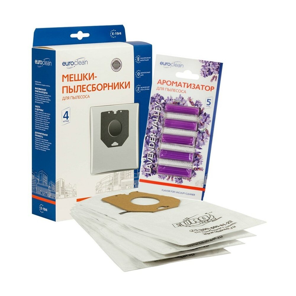 Мешки-пылесборники Euroclean синтетические 4 шт и ароматизатор "Лаванда" для пылесоса PHILIPS HR8907 VISION