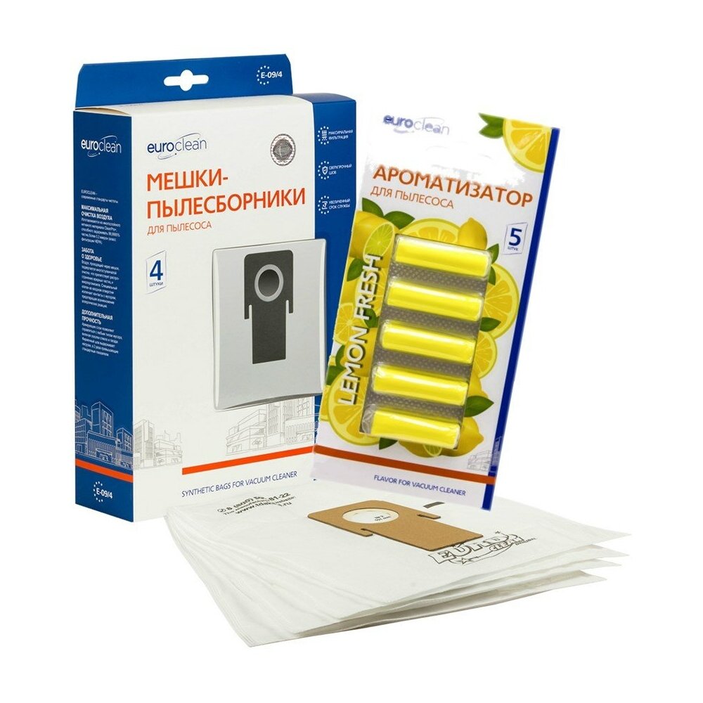 Мешки-пылесборники Euroclean синтетические 4 шт и ароматизатор "Лимон" для пылесоса THOMAS HYGIENE T2 PLUS