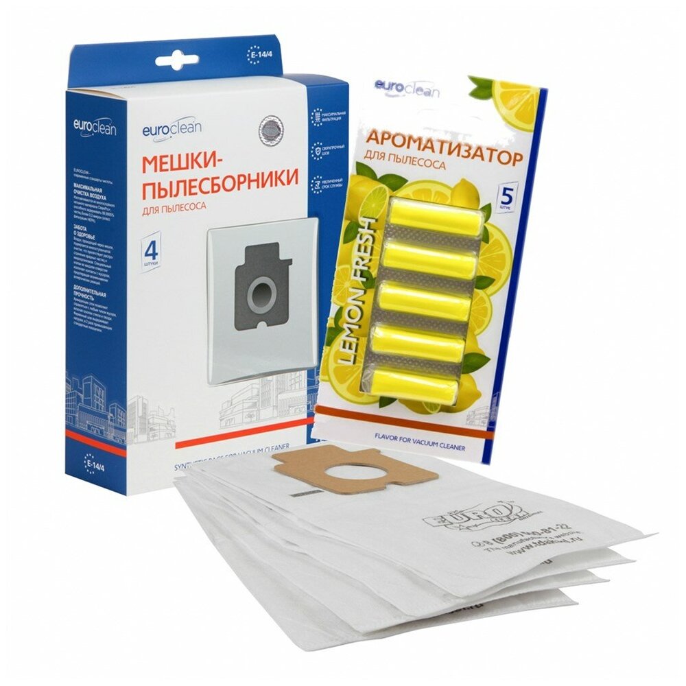 Мешки-пылесборники Euroclean синтетические 4 шт и ароматизатор "Лимон" для пылесоса PANASONIC MC-E860