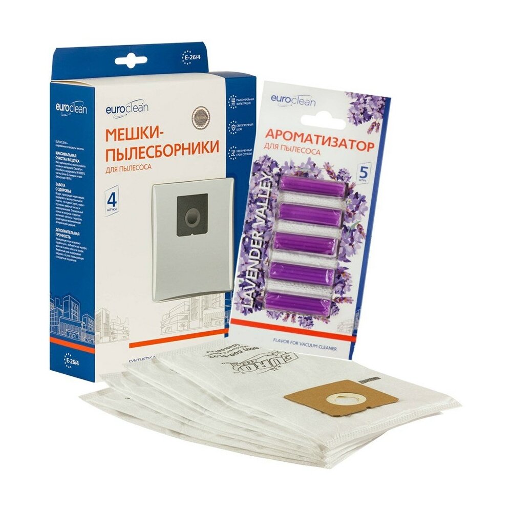 Мешки-пылесборники Euroclean синтетические 4 шт и ароматизатор "Лаванда" для пылесоса GORENJE VC2027RPO