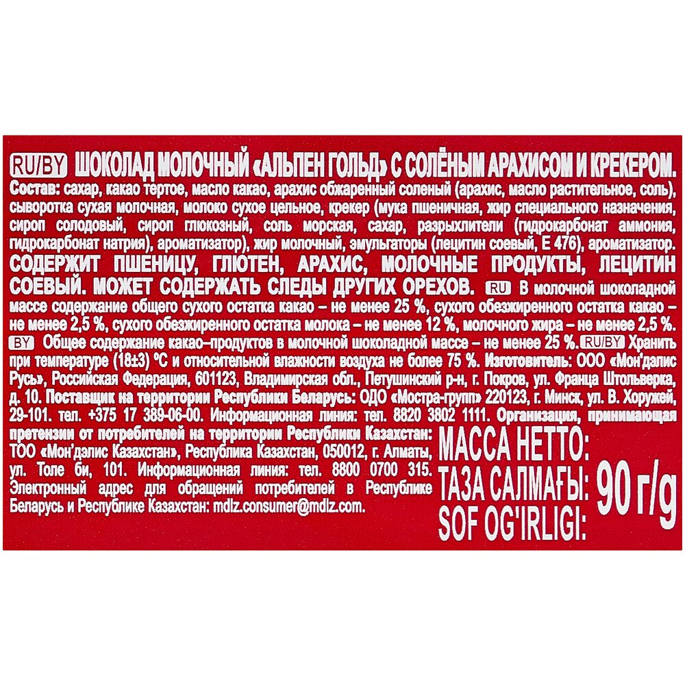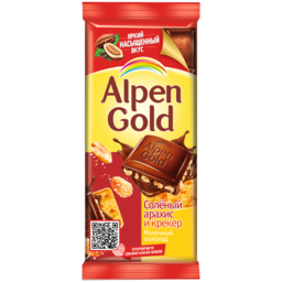 Шоколад Alpen Gold молочный с солёным арахисом и крекером, 90 г