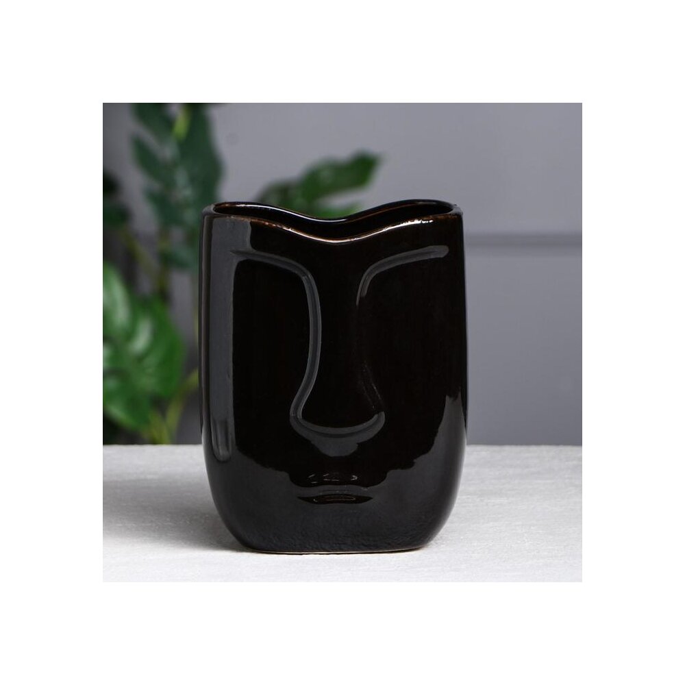 Ваза настольная "Лицо" №1, глянец, чёрная, 19 см, 1 сорт 4233813