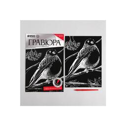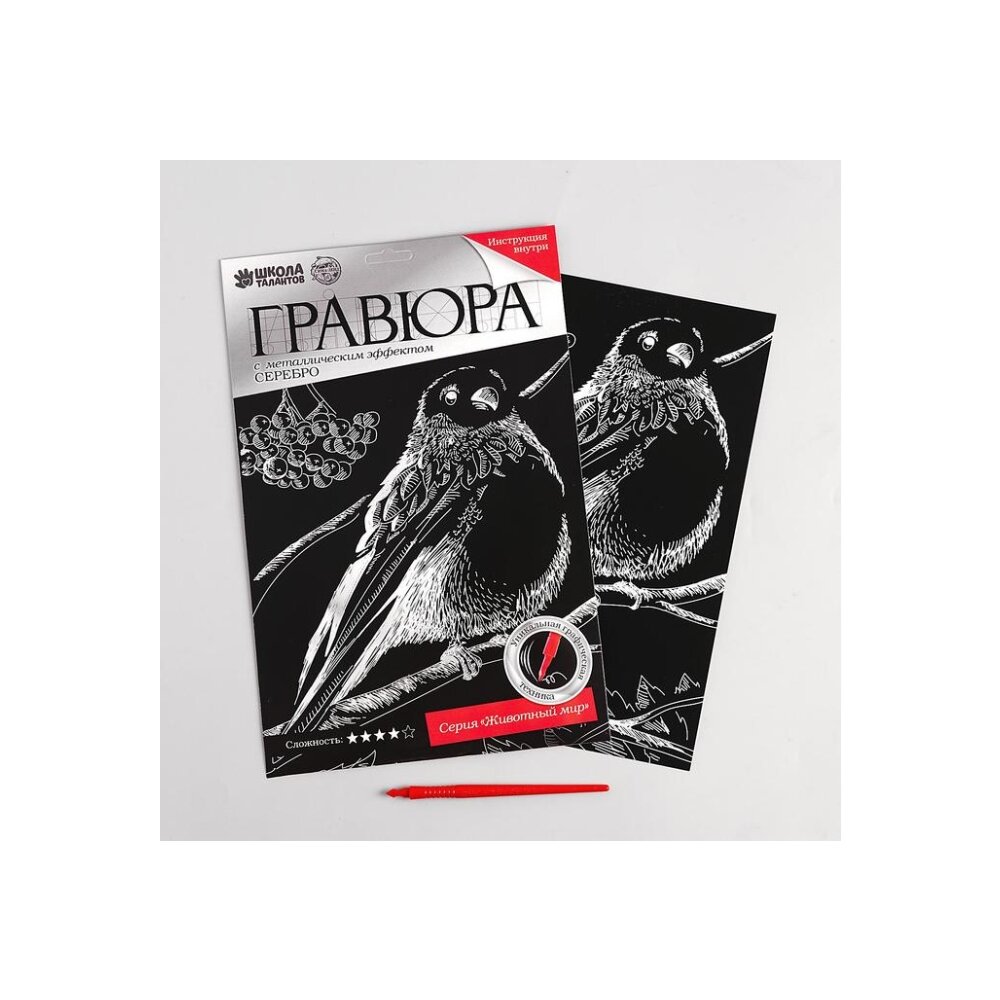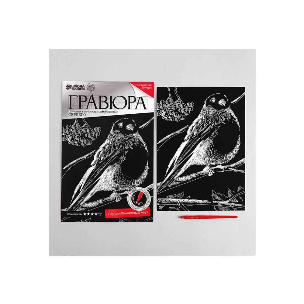 Гравюра «Снегирь» с металлическим эффектом серебра А4 + штихель