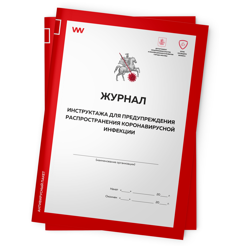 Комплект журналов инструктажа для предупреждения распространения коронавирусной инфекции, 2 шт. по 56 стр., форма из антивирусного пакета Департамента предпринимательства и инновационного развития города Москвы, Докс Принт