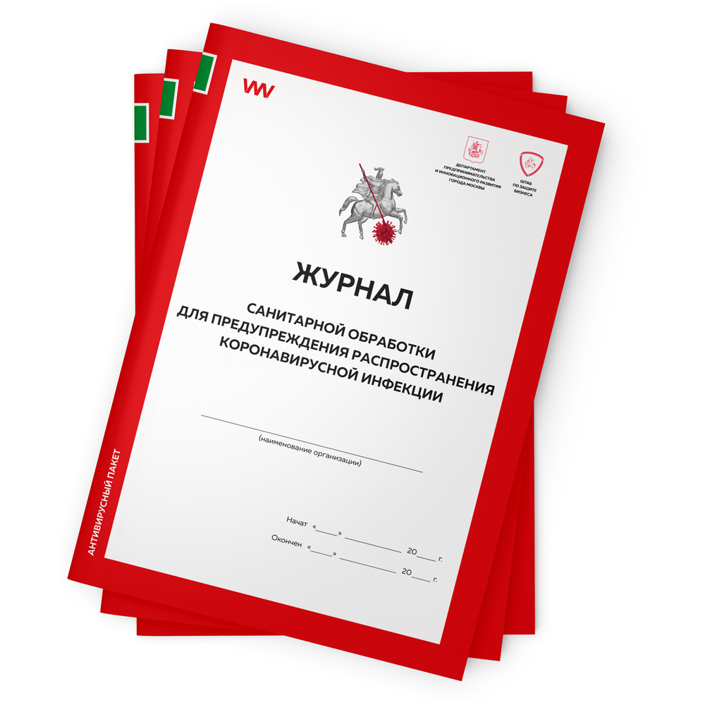 Комплект журналов санитарной обработки для предупреждения распространения коронавирусной инфекции, 3 шт. по 56 стр., форма из антивирусного пакета Департамента предпринимательства и инновационного развития города Москвы, Докс Принт