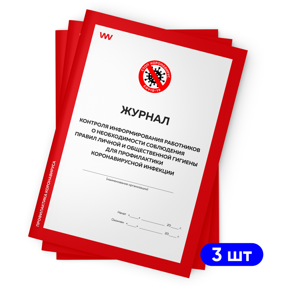 Комплект журналов контроля информирования работников о необходимости соблюдения правил гигиены для профилактики коронавирусной инфекции, 3 шт. по 56 стр., Докс Принт
