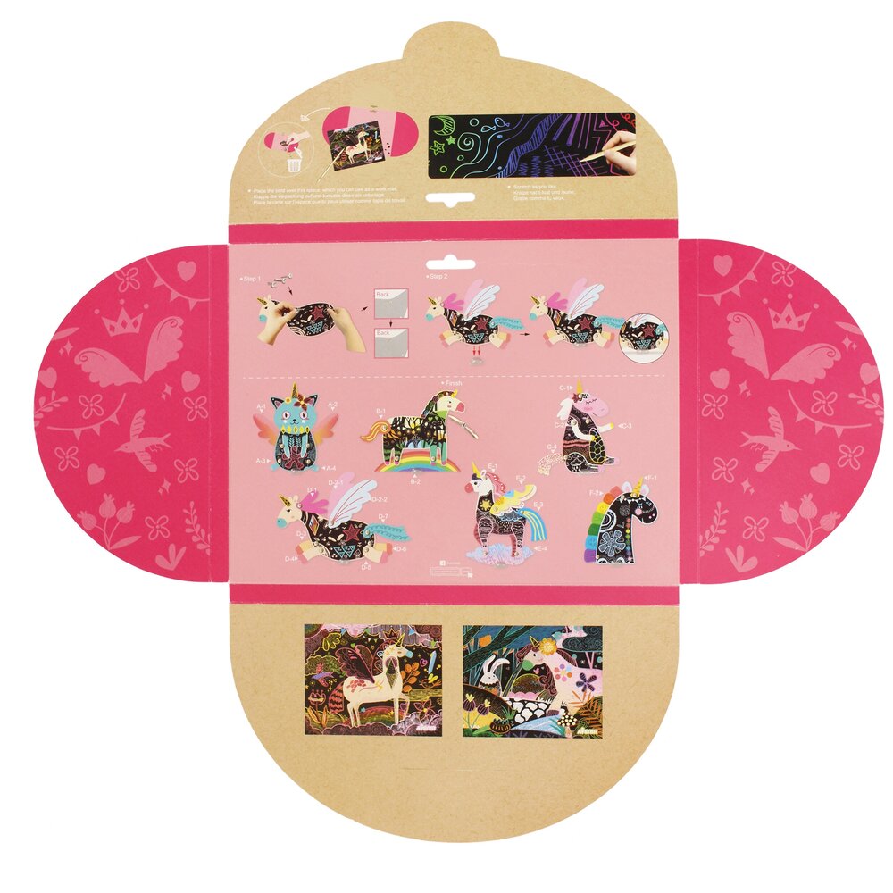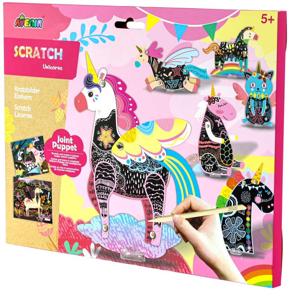Набор для гравюры шарнирных игрушек единороги от бренда AVENIR позволит ребенку познакомиться с уникальной техникой рисования Scratch Art и самостоятельно смастерить 6 кукол-марионеток. В набор входят картонные заготовки для сборки 6 подвижных фигурок сказочных единорогв. Сначала раскрасьте элементы с помощью техники Scratch Art, а затем используйте фиксирующие гвоздики-застежки, чтобы соединить детали вместе. И тогда сказочные единороги оживут! Для удобства игры используйте специальные подставки под каждую фигурку. Такой увлекательный творческий процесс поможет не только разнообразить досуг детей, но и провести его с пользой для мелкой моторики рук и координации движений. Художественный комплект научит терпению, умению доводить до конца начатое, поможет развить воображение и укрепит пальцы рук. В комплекте подробная и красочная инструкция в картинках.