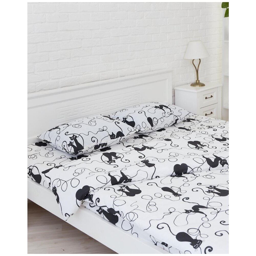 Постельное бельё, бязь "Всё себе" Коты на белом Размер: Семейный наволочки 50 х 70