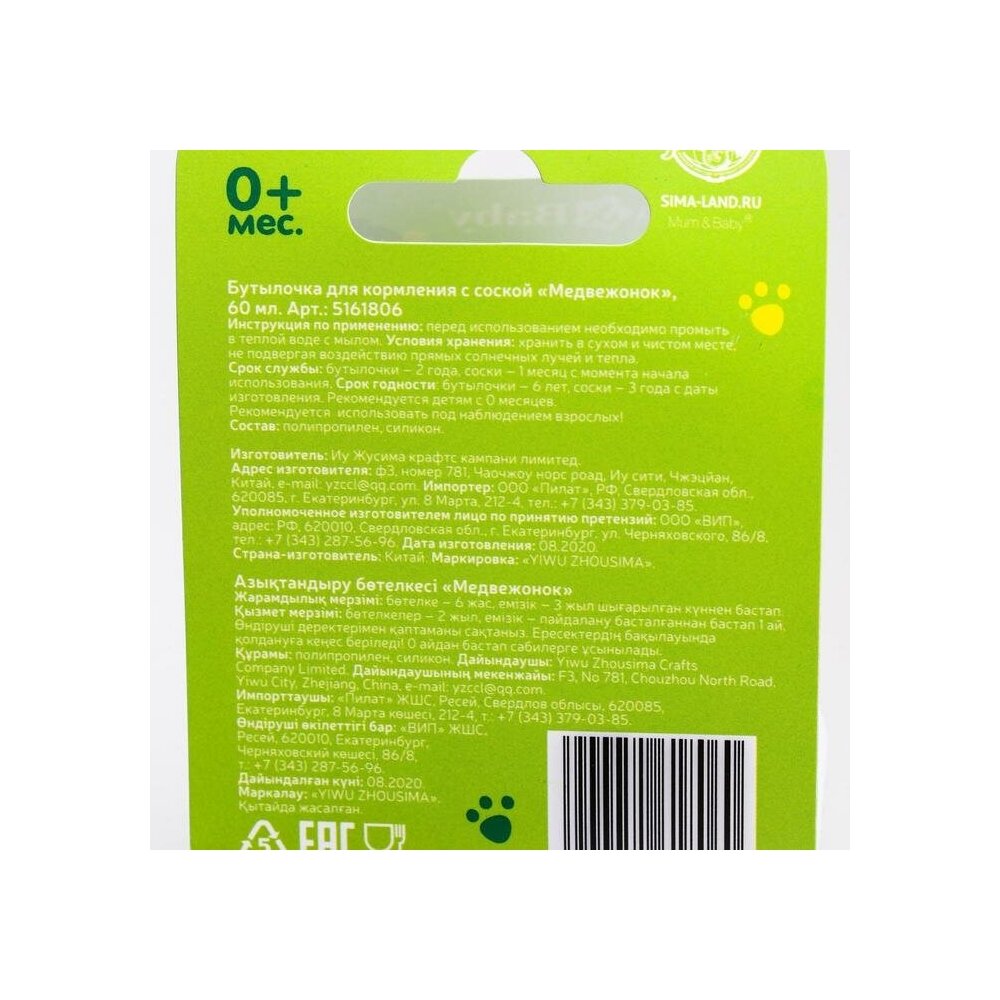 Бутылочка для кормления 60 мл с соской "Медвежонок"