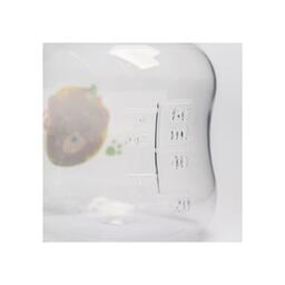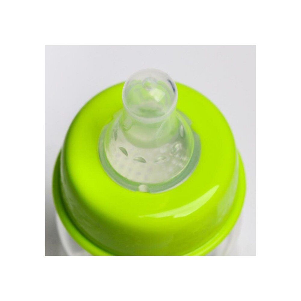 Пластиковая бутылочка мало весит, поэтому её удобно давать ребёнку. Износостойкий материал прослужит около 2 лет. Особенности Силиконовая соска не имеет вкуса и запаха. Средний поток оптимален для молока, молочных смесей, воды и чая. Рёбра жёсткости соски не дают ей сминаться во время кормления. Кольцо бутылочки имеет рельефные элементы, имитирующие ареолы груди. Выпуклая мерная шкала помогает точно определить объём питания. Эргономичная форма ёмкости разработана специально для удобного захвата. Изделие не содержит бисфенол А. Детская бутылочка изготовлена в России из сырья отечественного производства. Все материалы сертифицированы и безопасны для здоровья новорождённых. Полипропилен и силикон не выделяют вредных веществ при стерилизации и контакте с жидкостью.