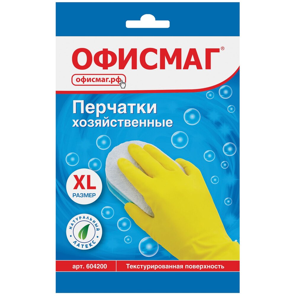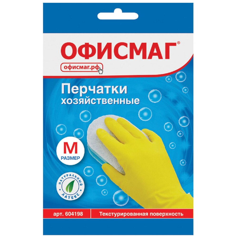 Перчатки ОфисМаг хозяйственные латексные с хлопчатобумажным напылением, 1 пара, размер M, цвет желтый