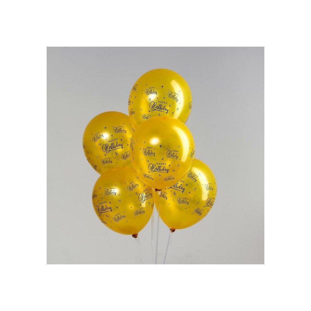Шар воздушный 12" "Happy Birthday." золото, набор 50 шт., 4 ст.