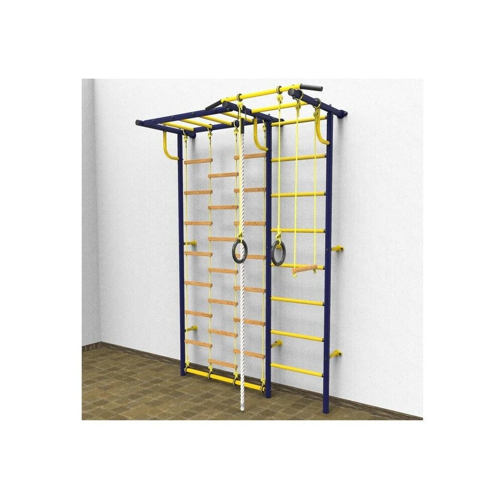 Спортивный уголок для детей с рукоходом представляет собой шведскую стенку, оснащенную разнообразным навесным оборудованием. Спортивный комплекс изготовлен по модульному принципу и может оснащаться дополнительными элементами и аксессуарами. Крепление: к стене, 12 точек. Ширина ступенек: 45 см. Рифлёные ступени с ПВХ покрытием. ПВХ ступеньки уменьшают скольжение, предотвращая падение. Рифлёная поверхность осуществляет массаж ладоней и ступней. Габариты и нагрузка Габариты (м): 0,70 × 1,63 × 2,3 Нагрузка на комплекс: 100 кг. Комплектация: шведская стенка, турник неподвижный, канат, рукоход, лестница комбинированная, трапеция, кольца гимнастические. Упакован в 2 коробки, размер каждой 91 см × 25 см × 13 см.